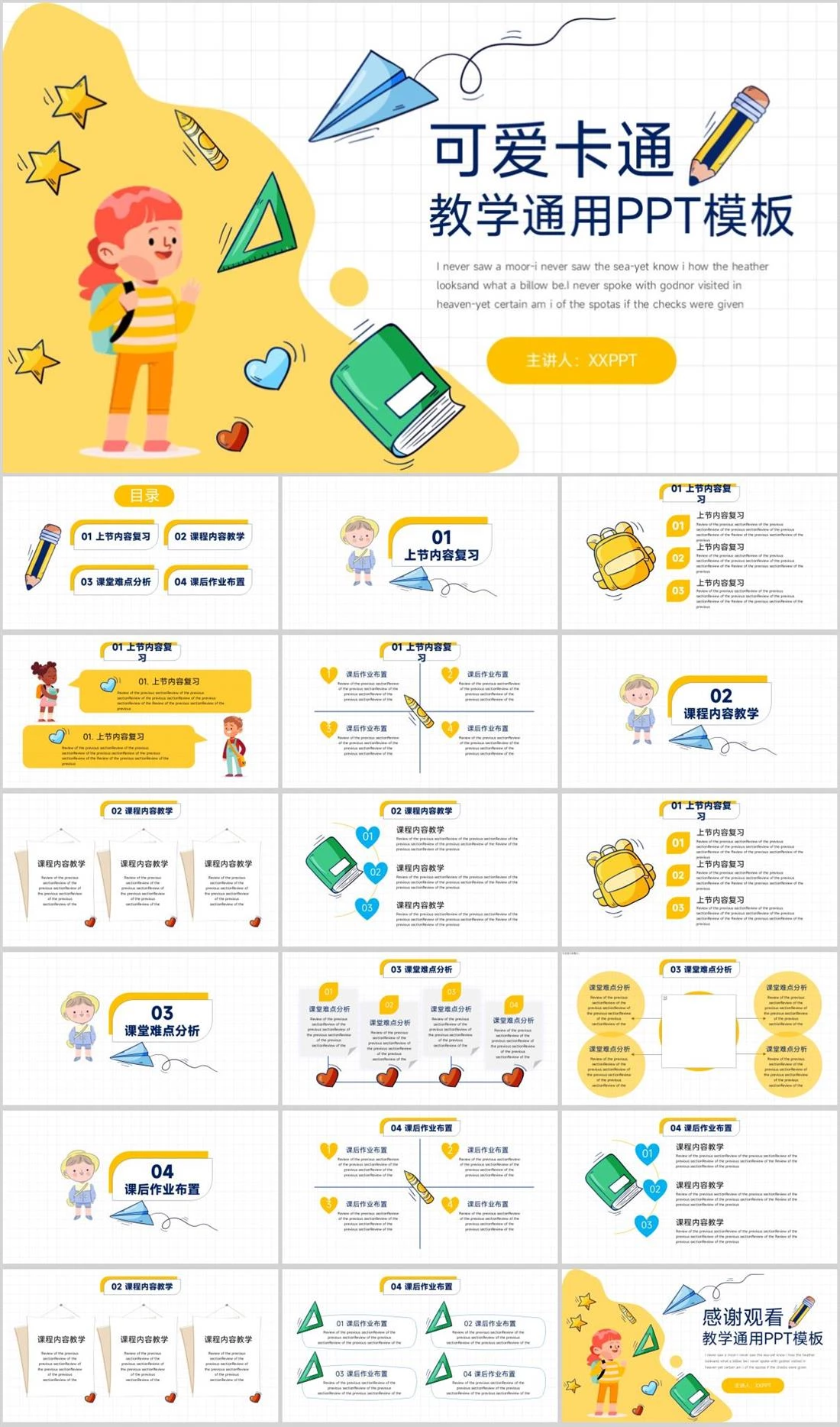 可爱卡通教学通用PPT模板I never saw a moor-i never saw the sea-yet know i how the heather looksand what a billow be.I never spoke with godnor visited in heaven-y卡通可爱,984,