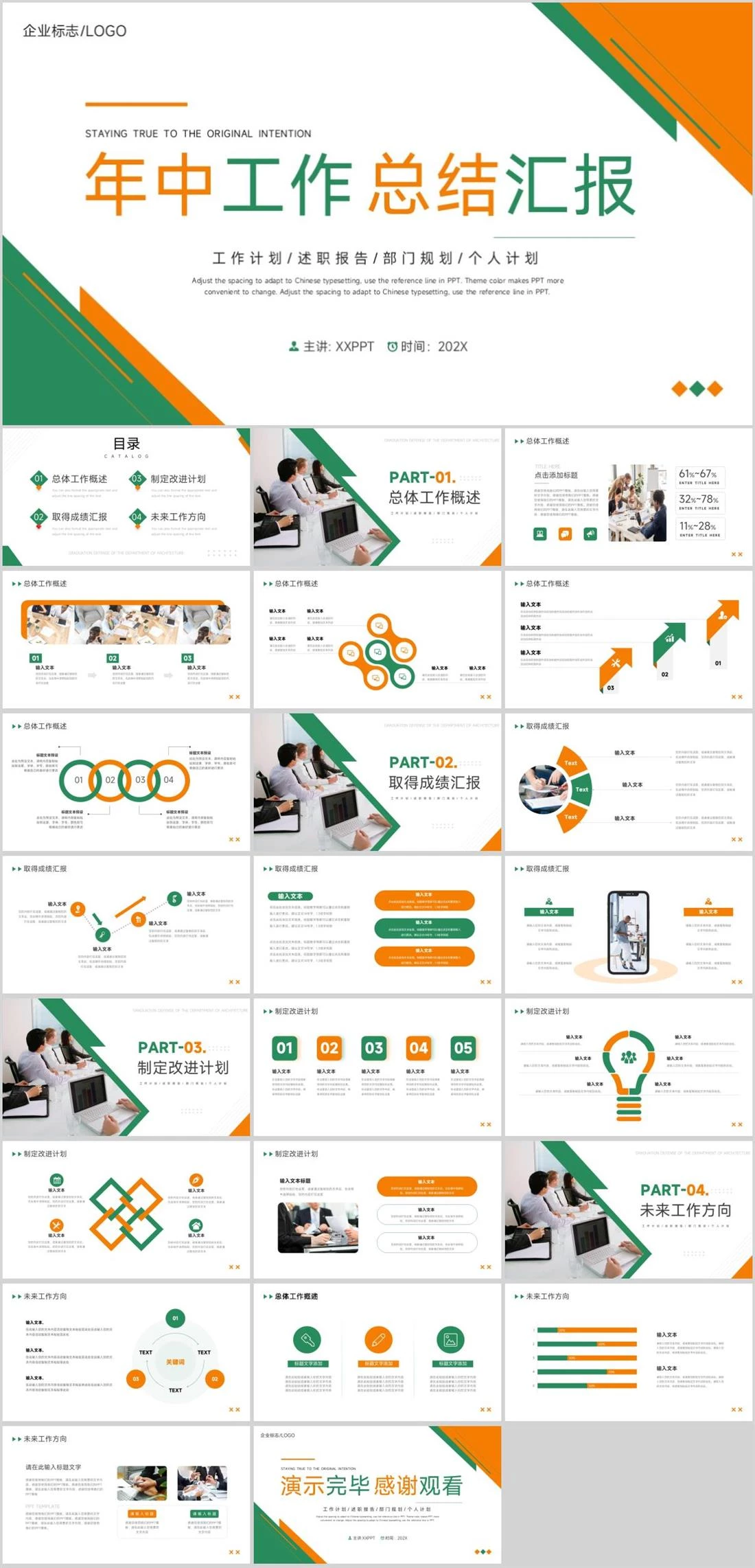企业标志/LOGO年中工作总结汇报STAYING TRUE TO THE ORIGINAL INTENTION主讲: XXPPT时间:202XAdjust the spacing to adapt to Chinese typesetting, use the reference line in 商务汇报,1234,