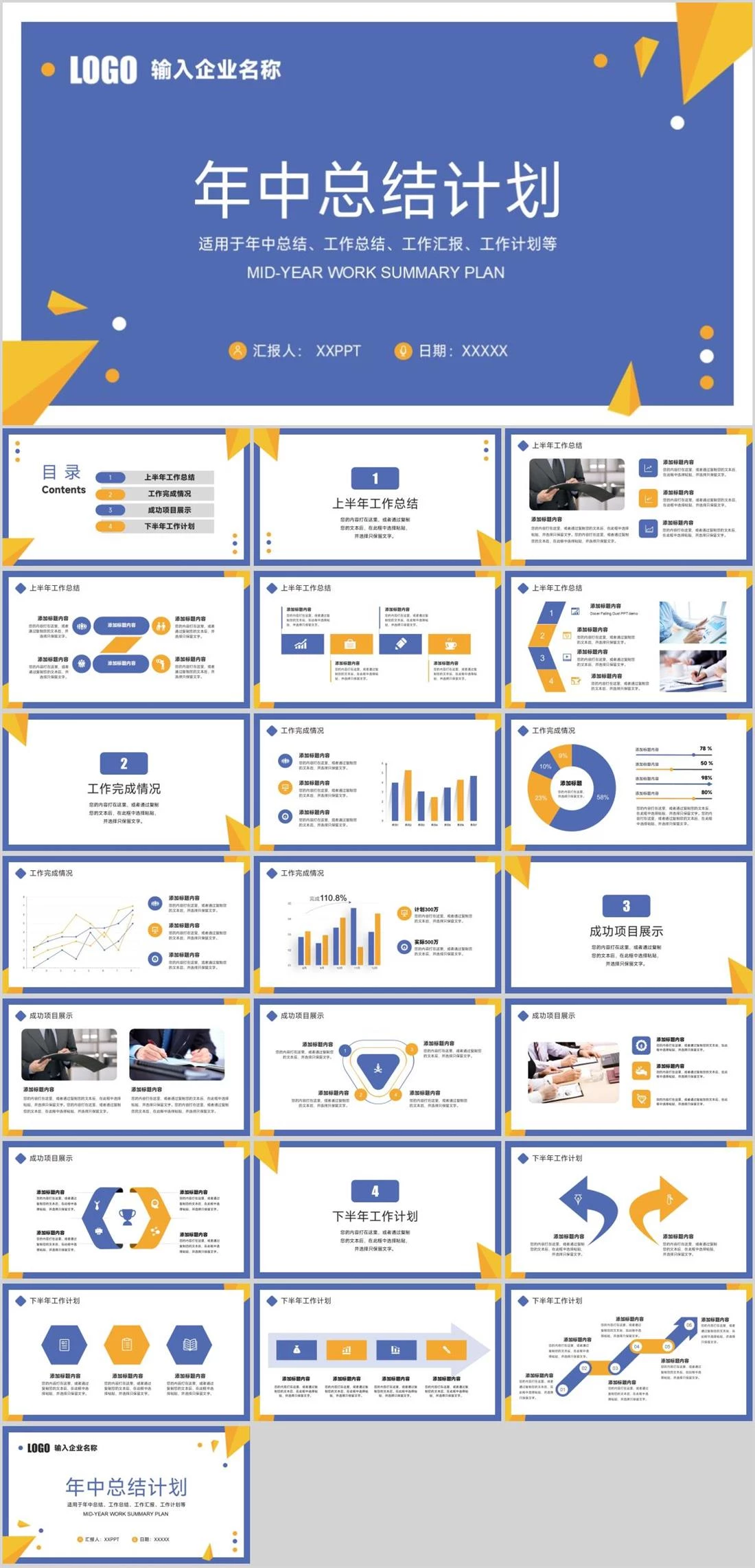 适用于年中总结、工作总结、工作汇报、工作计划等日期:XXXXX汇报人: XXPPT输入企业名称LOGO年中总结计划Mid-year work summary plan商务汇报,1235,