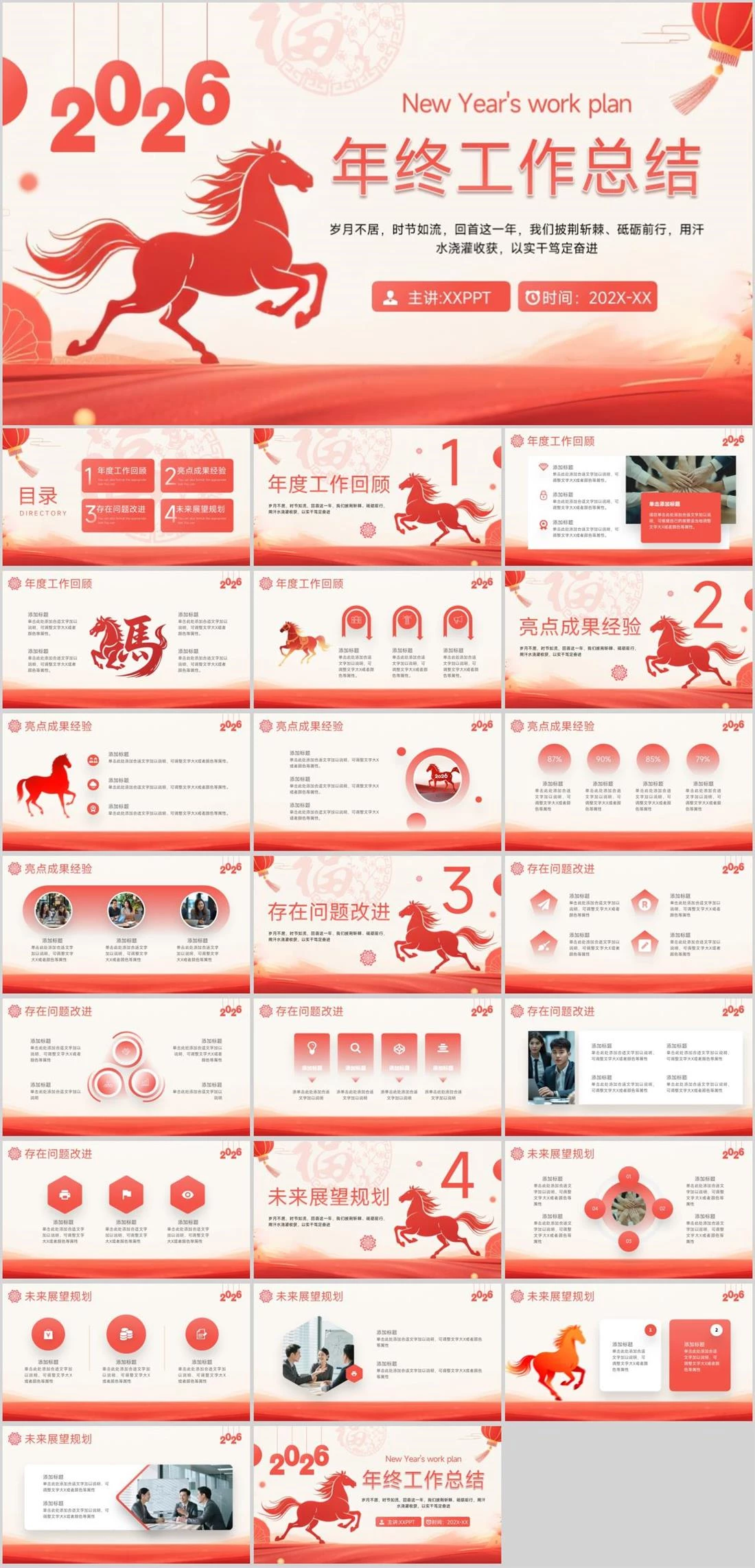 XXXNew Year's work plan主讲:XXPPT时间:202X-XX年终工作总结年终工作总结岁月不居,时节如流,回首这一年,我们披荆斩棘、砥砺前行,用汗水浇灌收获,以实干笃定奋进新年主题,1928,