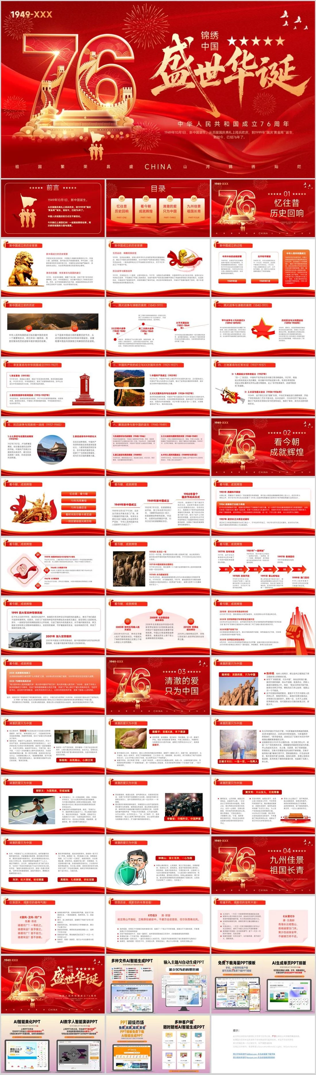 锦绣中国 中华人民共和国成立76周年祖国繁荣昌盛山河锦绣灿烂CHINA1949-XXX1949年10月1日,新中国诞生。从历届国庆典礼上阅兵欢庆,到1999年“国庆‘黄金周’”诞生,到如今,已经76年了。盛世华诞,