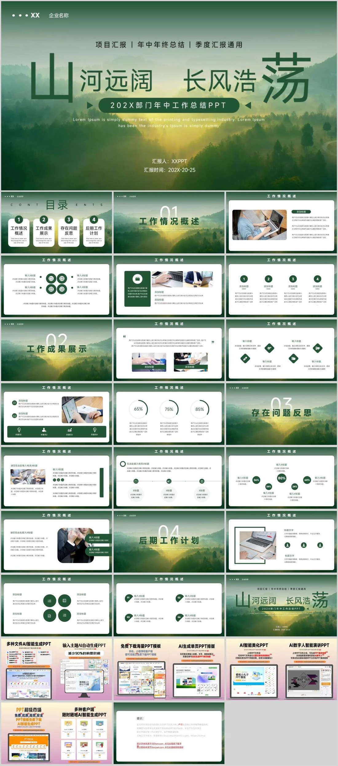 XX企业名称项目汇报 | 年中年终总结 | 季度汇报通用河远阔长风浩荡山202X部门年中工作总结PPTLorem Ipsum is simply dummy text of the printing and typesetting industry. Lorem Ipsum has been the 简约商务,65,