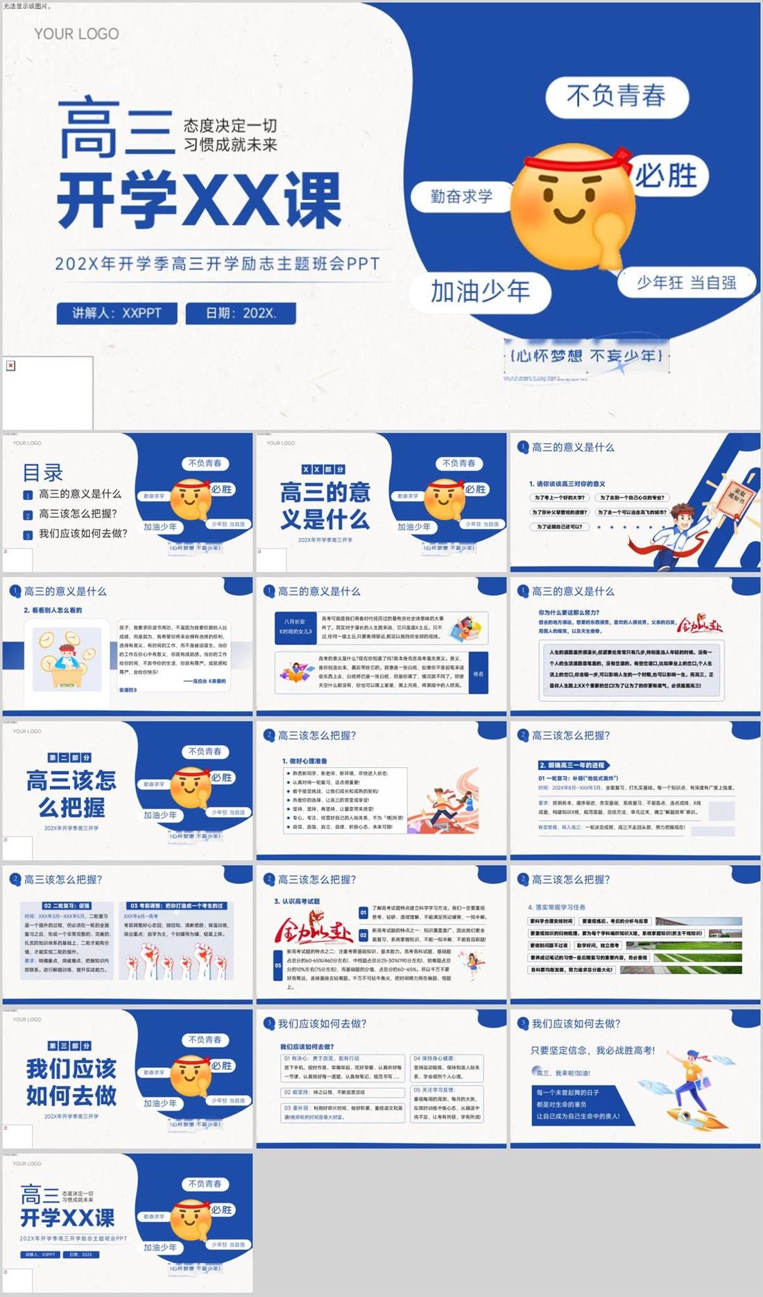 202X年开学季高三开学励志主题班会PPT 态度决定一切习惯成就未来讲解人:XXPPT日期:202X.开学XX课高三YOUR LOGO开学主题,697,