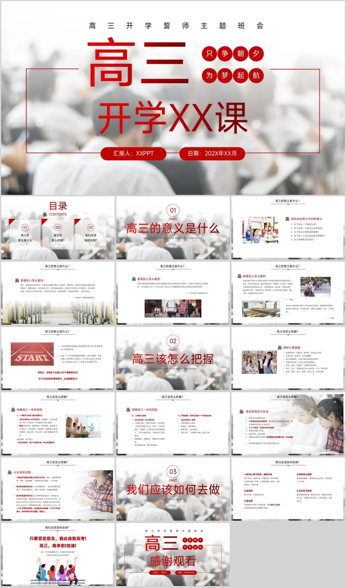 开学XX课高三只争朝夕为梦起航高三开学誓师主题班会汇报人:XXPPT 日期:202X年XX月开学主题,698,