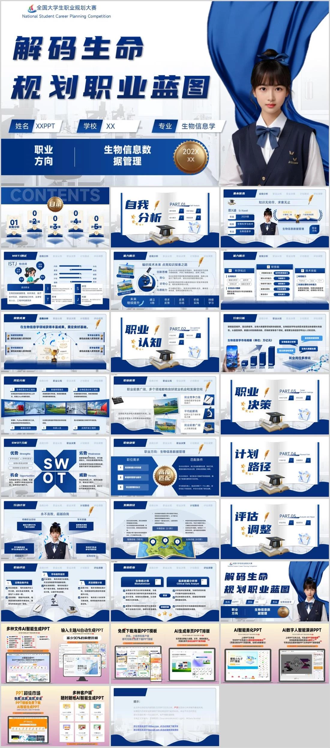 全国大学生职业规划大赛National Student Career Planning Competition姓名 XXPPT学校 XX专业 生物信息学202XXX生物信息数据管理职业方向解码生命规划职业蓝图职业规划,2175,