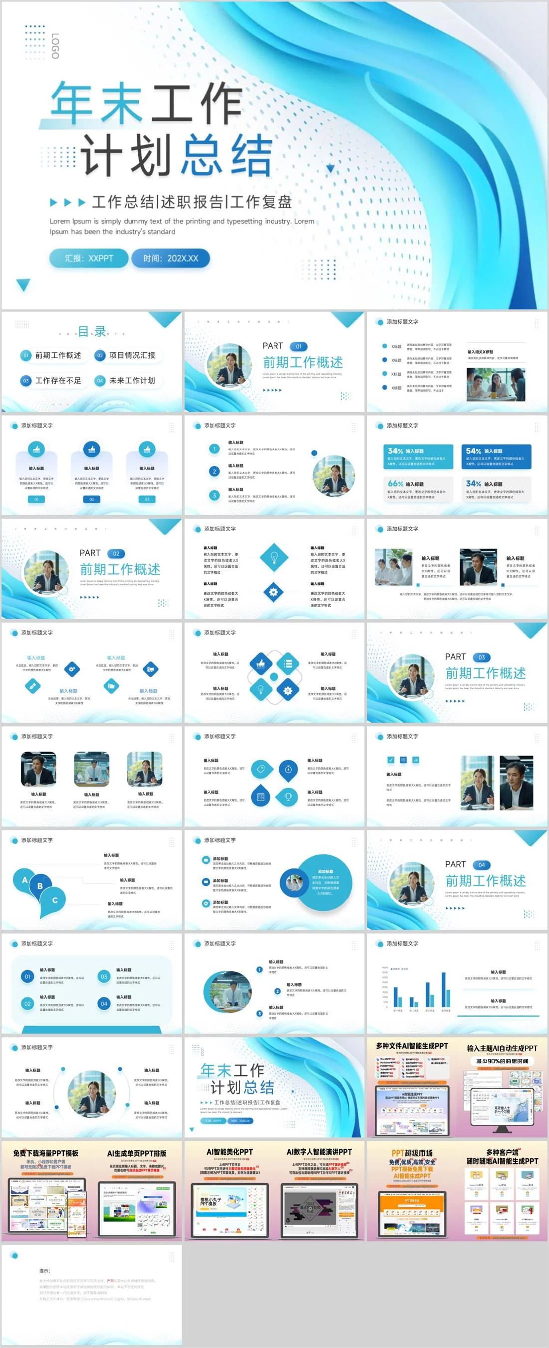 年末工作计划总结汇报:XXPPT时间:202X.XXLorem Ipsum is simply dummy text of the printing and typesetting industry. Lorem Ipsum has been the industry's standardLOGO工蓝色商务,802,