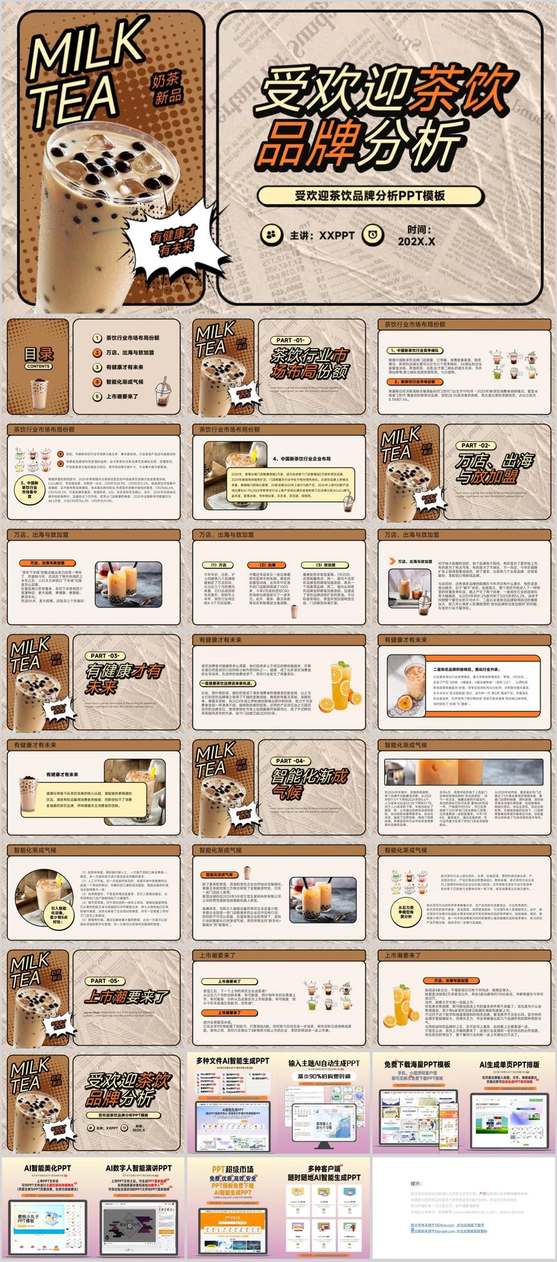 MILKMILKTEATEA奶茶新品奶茶新品受欢迎茶饮品牌分析受欢迎茶饮品牌分析受欢迎茶饮品牌分析受欢迎茶饮品牌分析PPT模板 主讲:XXPPT 时间:202X.X有健康才有未来有健康才有未来设计行业,416,