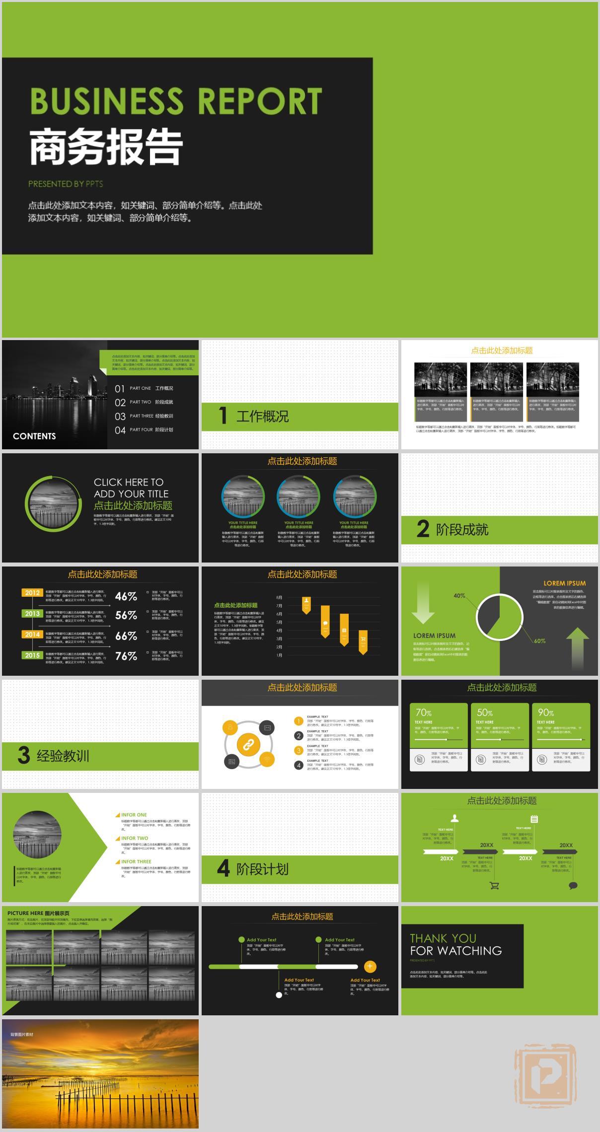 商务报告PPT模板-黑绿-PPT模板免费下载