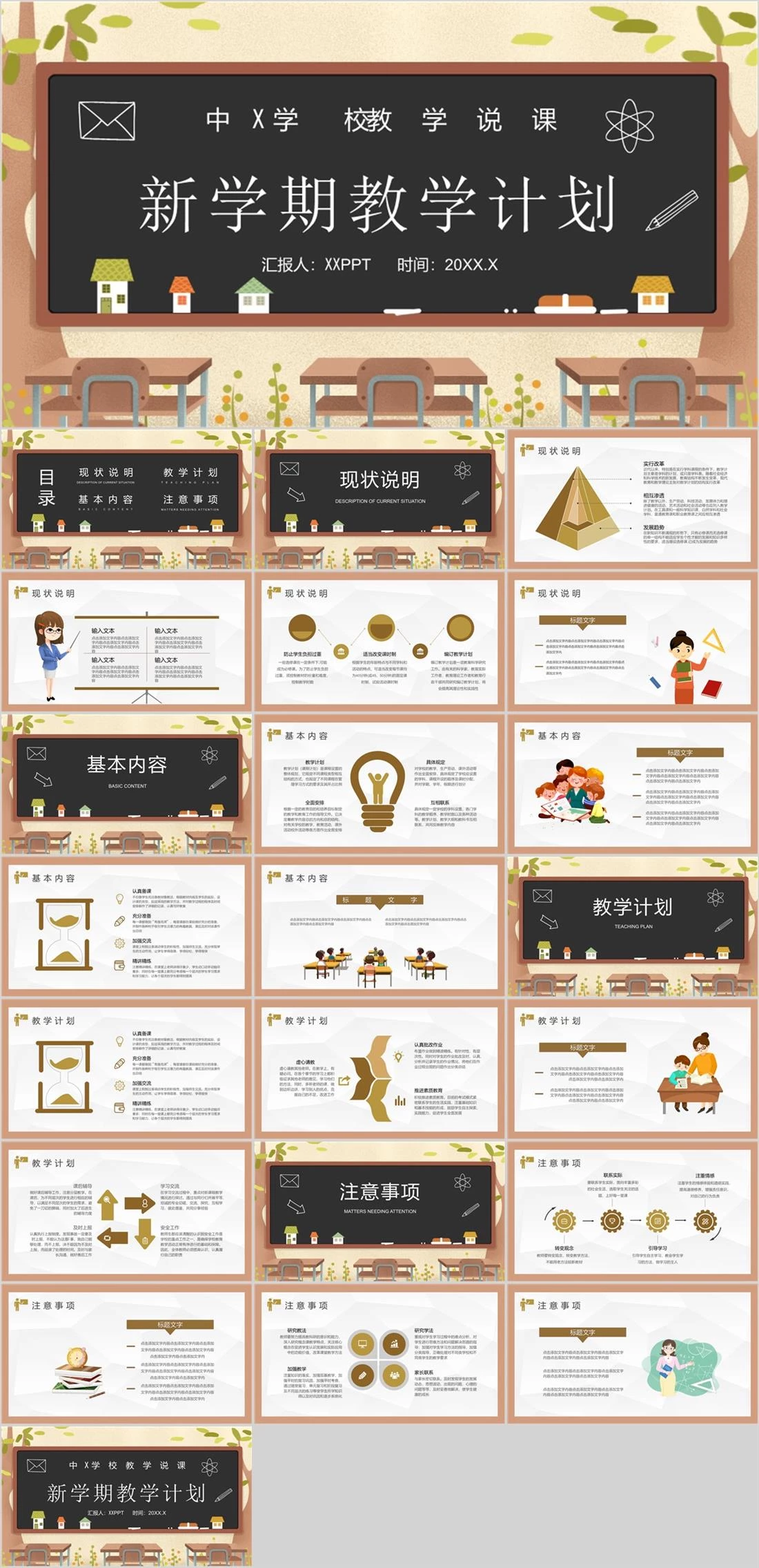 新学期教学计划中X学校教学说课汇报人:XXPPT 时间:20XX.X164131528,教学计划,
