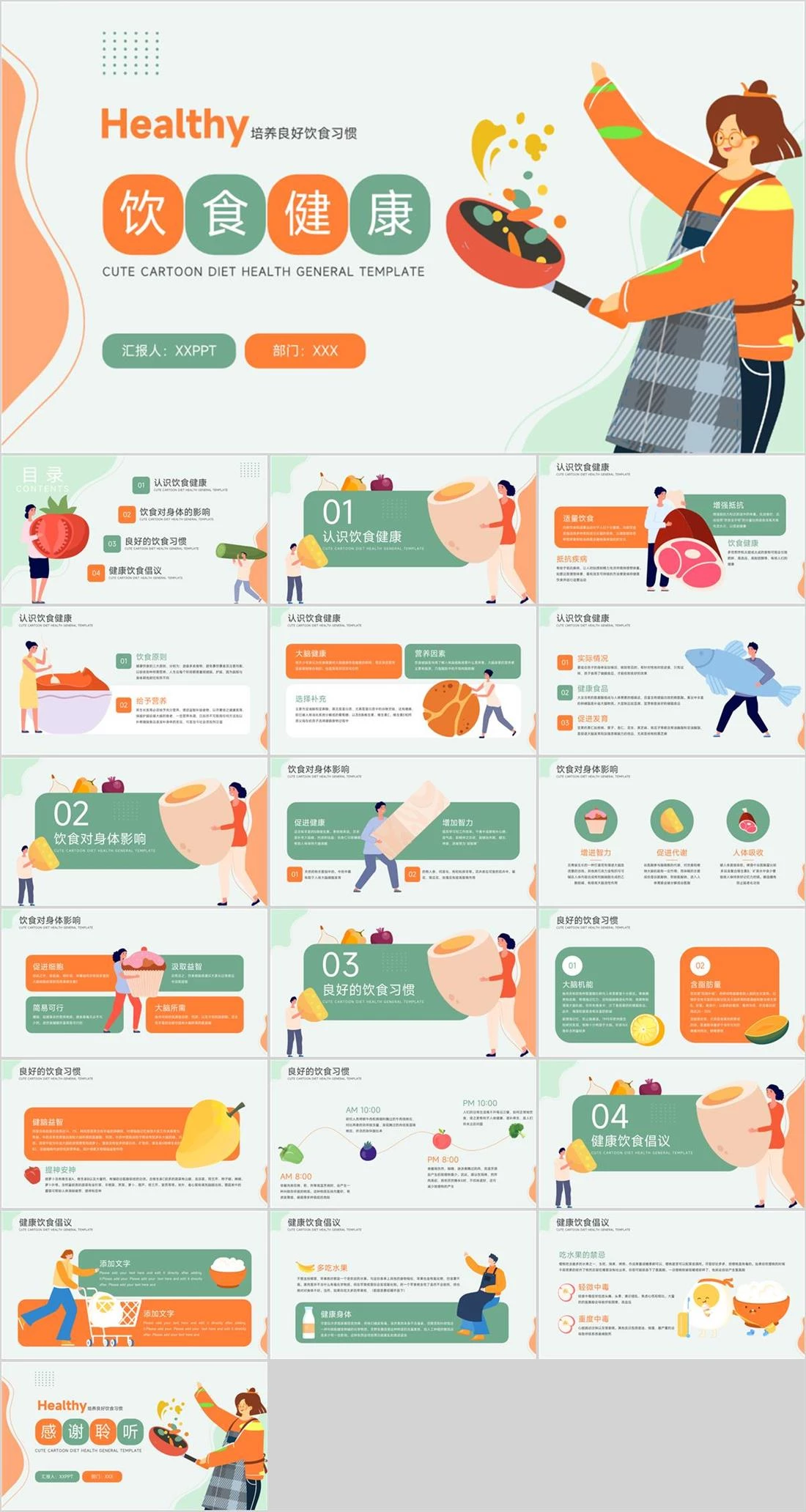 饮食健康HealthyCUTE CARTOON DIET HEALTH GENERAL TEMPLATE培养良好饮食习惯汇报人:XXPPT部门:XXX健康饮食,2,