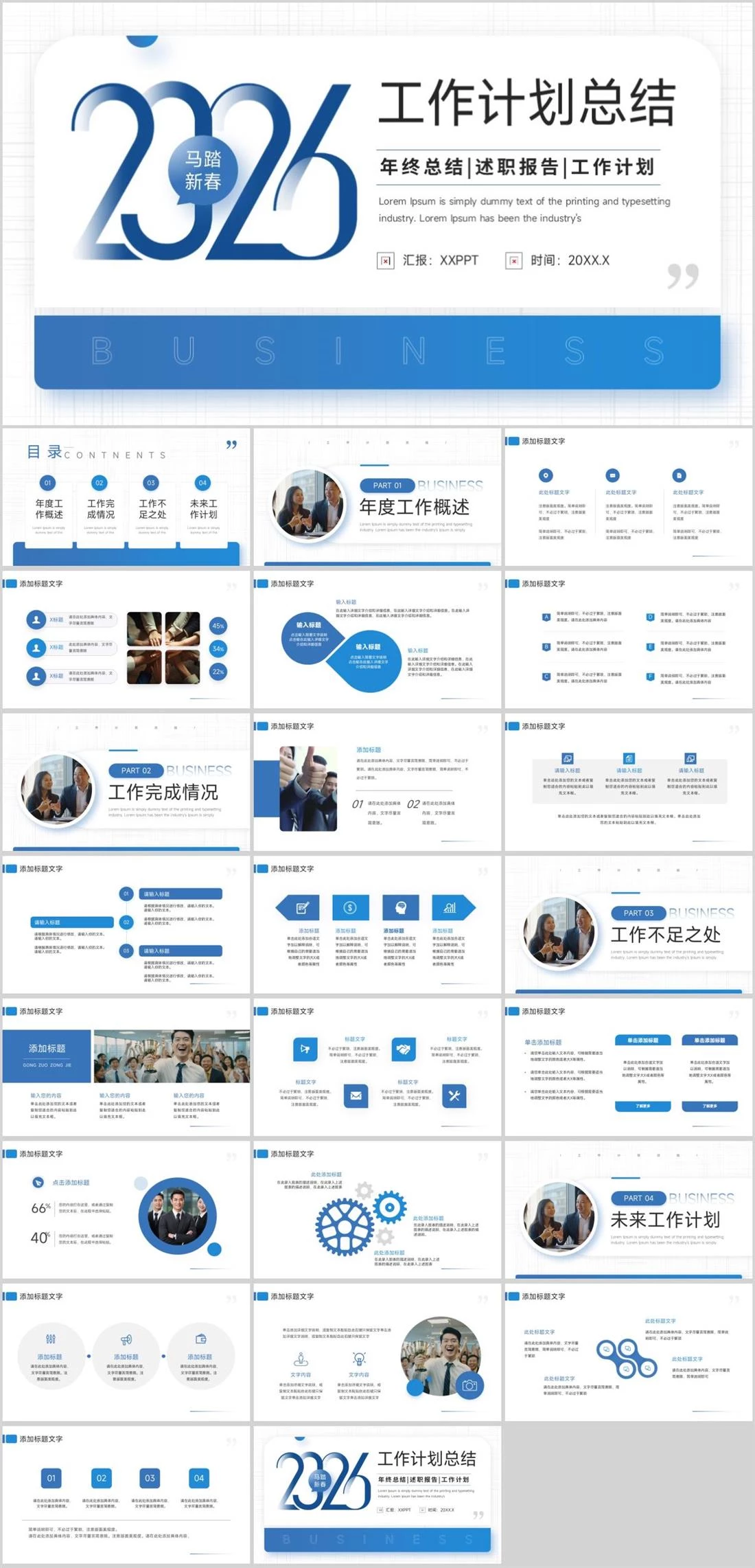 工作计划总结Lorem Ipsum is simply dummy text of the printing and typesetting industry. Lorem Ipsum has been the industry's汇报:XXPPT 时间:20XX.X年终总结|述职报告|工作计划B工作总结,2542,