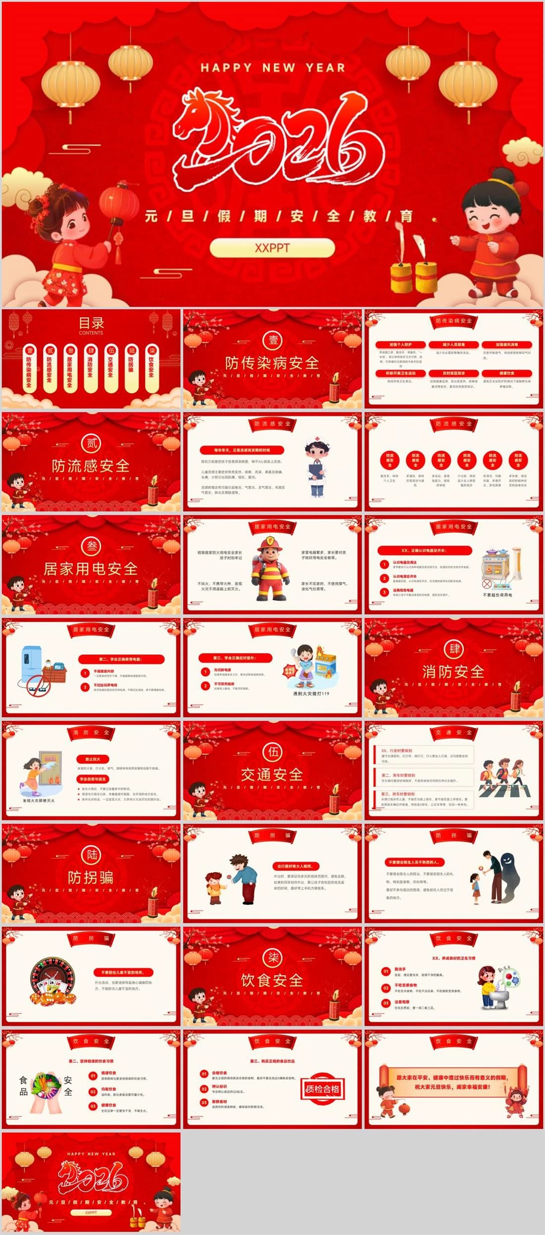 HAPPY NEW YEAR元/旦/假/期/安/全/教/育XXPPT元旦主题,2634,