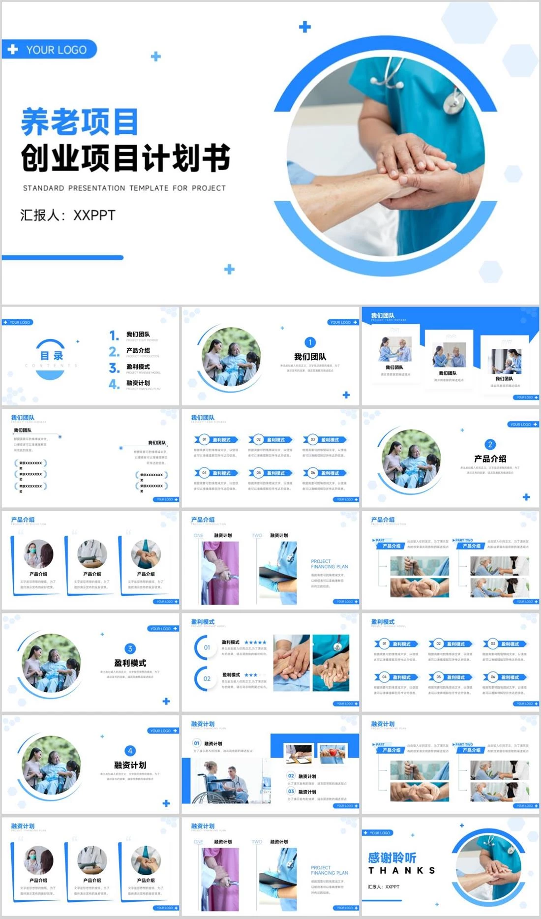 养老项目创业项目计划书STANDARD PRESENTATION TEMPLATE FOR PROJECT汇报人:XXPPTYOUR LOGO智慧养老,524,