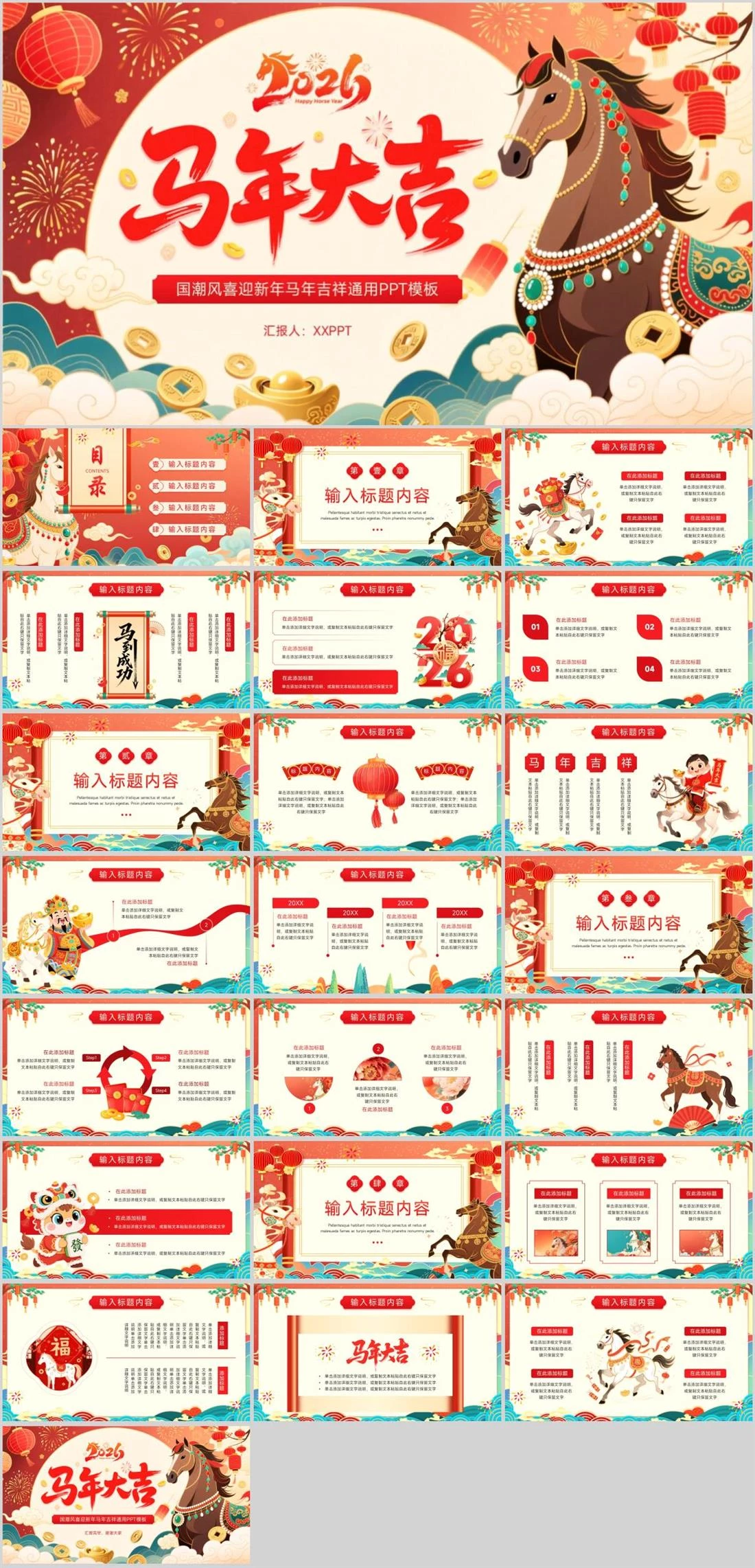 国潮风喜迎新年马年吉祥通用PPT模板汇报人:XXPPT年终总结,1794,