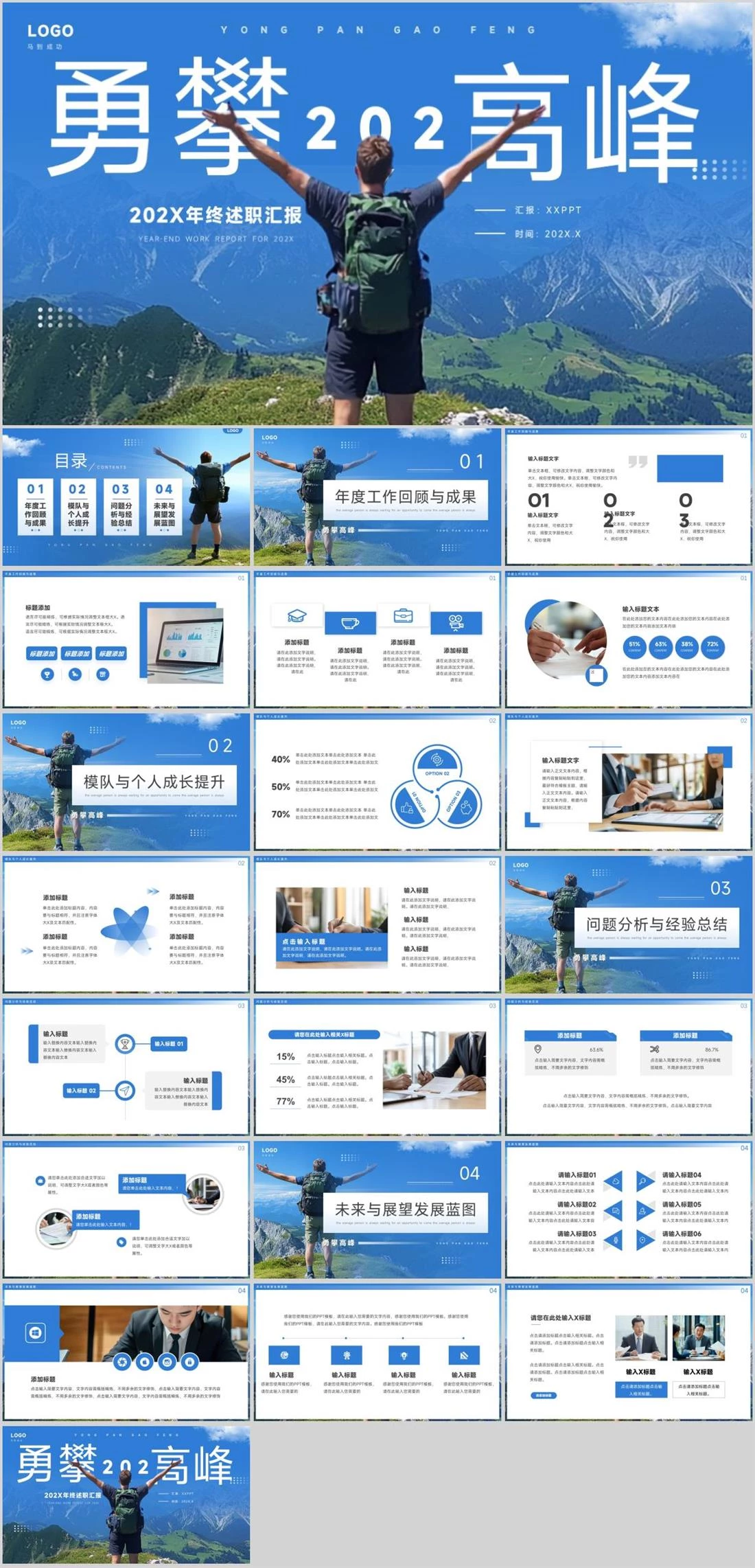 勇攀高峰202X202X年终述职汇报YEAR-END WORK REPORT FOR 202X汇报:XXPPT时间:202X.XYONG PAN GAO FENG LOGO 马到成功年终总结,1832,